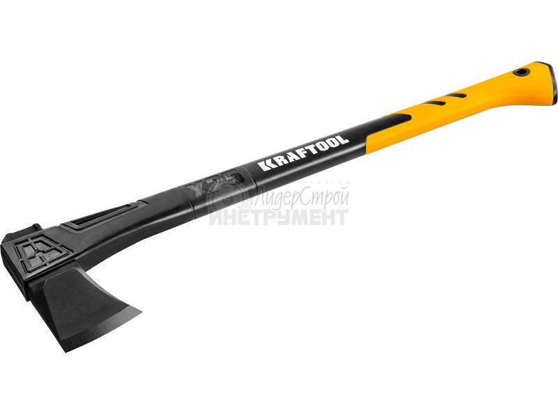 Топор изготовлен методом свободной ковки из стали марки 60Г. Твердость – 50 HRc. Фибергласовое обрезиненное топорище обладает высокой механической прочностью, устойчиво к воздействию агрессивной среды и отлично поглощает колебания, возникающие при рубке, не передавая их на руку. Вес с топорищем 1200 г.