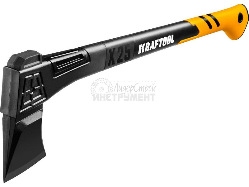 Топор изготовлен методом свободной ковки из стали марки 60Г. Твердость – 50 HRc. Фибергласовое обрезиненное топорище обладает высокой механической прочностью, устойчиво к воздействию агрессивной среды и отлично поглощает колебания, возникающие при рубке, не передавая их на руку. Вес с топорищем 1400 г.