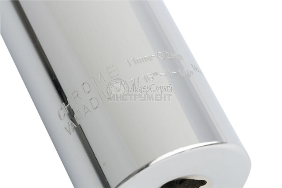 Изготовлена из высококачественной хромванадиевой стали твердостью 42 HRc. Полированное хромированное покрытие защищает деталь от коррозии. Для эксплуатации необходим переходник с квадратом 1/2".
