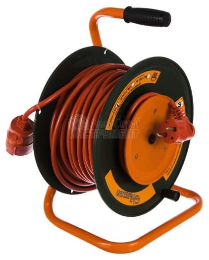 Вид провода – ПВС 2х2,5, что гарантирует высокую прочность и долговечность удлинителя. Номинальная мощность в размотанном состоянии составляет 3500 Вт.