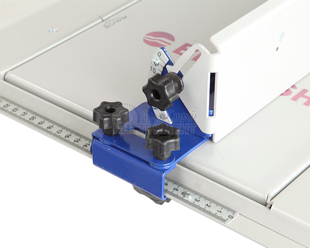 В комплект входит концевой и параллельный упор и линейка с разметкой.