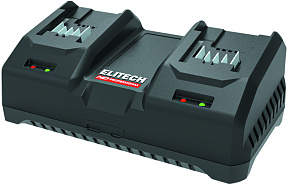 Зарядное устройство с двумя портами для Li-Ion аккумуляторов ELITECH напряжением 10,8-20 В слайдерной конструкции. Ток заряда 6 А.