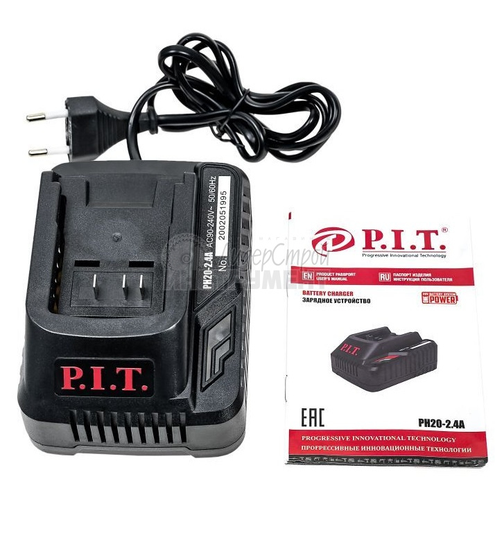 P.I.T. PH20-2.4A - зарядное устройство, предназначенное для заряда Li-ion аккумуляторов единой системы OnePower с напряжением 20 В. Режим работы устройства обеспечивает максимальное время работы и срок службы аккумулятора. Индикация на корпусе устройства позволяет контролировать процесс зарядки аккумуляторов.