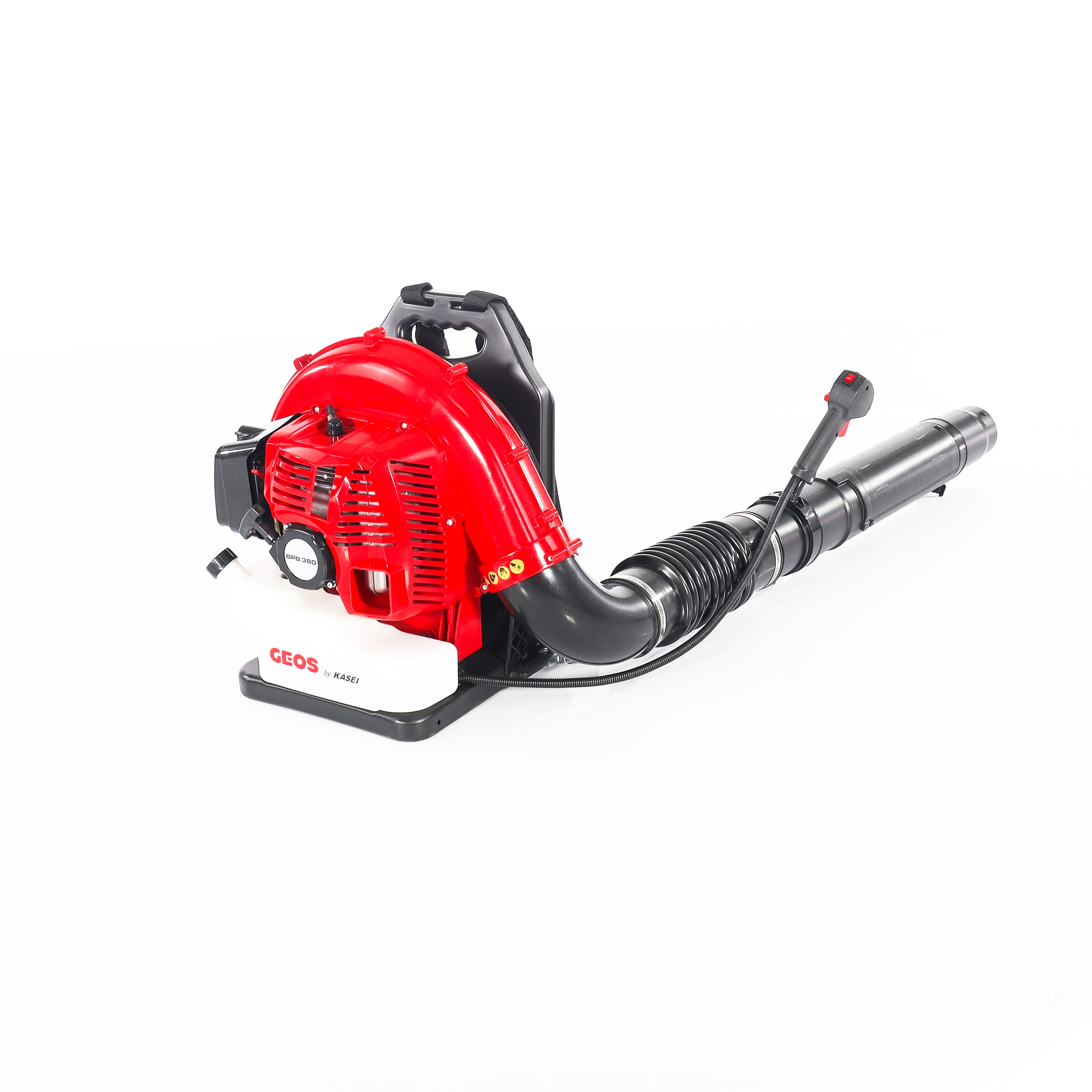 Двухтактный двигатель ранцевого воздуходува GEOS Max BPB 380 мощностью 4,5 л.с. обеспечивает надежную работу при минимальном расходе топлива. Максимальная скорость воздуха с круглой насадкой составляет 87 м/с.
