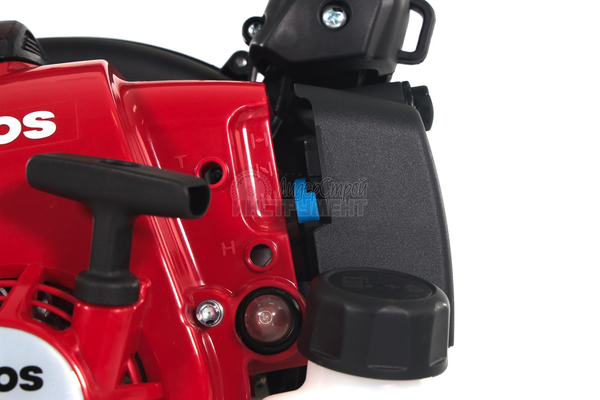 Двухтактный двигатель мощностью 1,1 л.с. с системой плавного пуска ElastoStart быстро заводится и экономно потребляет топливо. Технология 2-MIX позволяет снизить количество вредных веществ в атмосферу. Рабочий объём – 27,2 см³, расход воздуха – 80 м/c. Устройством можно управлять одной рукой при помощи рукоятки с мягкой накладкой. Фиксатор рычага газа позволяет задавать и поддерживать необходимые параметры работы двигателя, что особенно удобно при продолжительной работе.