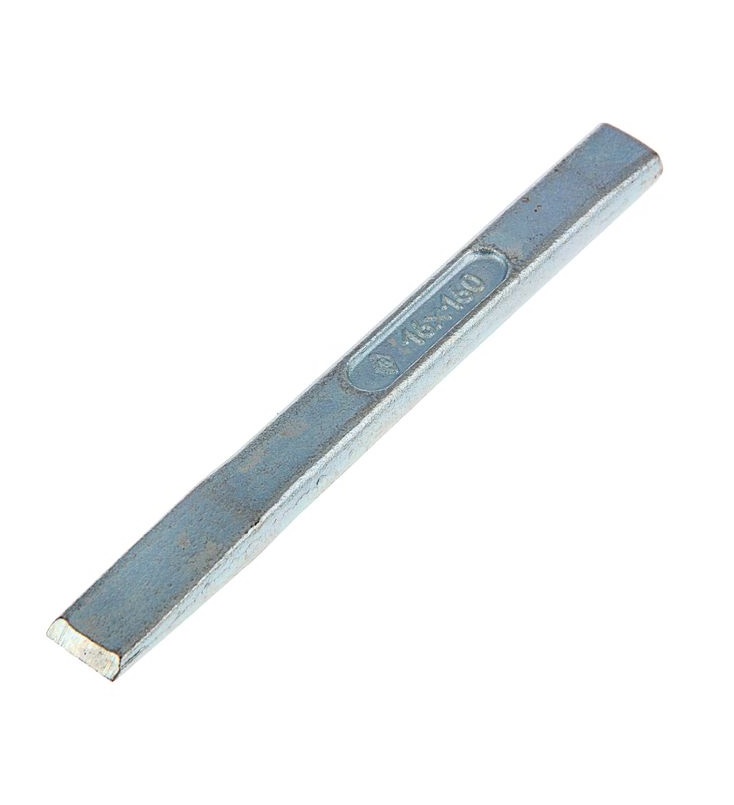 это надежный ударный инструмент, предназначенный для рубки металла. Инструмент полностью выполнен из углеродистой стали марки У7 и имеет оцинкованное покрытие для защиты от образования коррозии. Режущая часть технологически притуплена для удобства при работе.