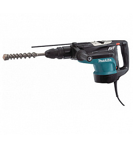 2. MAKITA HR2810. По характеристикам (мощность, диаметр сверления) модель близка к BOSCH 2-28D, но имеет вертикальную компоновку и укороченную базу. Энергия удара – 2,93 Дж. Комплектуется SDS-plus патроном, дополнительной рукояткой. Есть защита от заклинивания, блокировка кнопки запуска. Обороты регулируются.