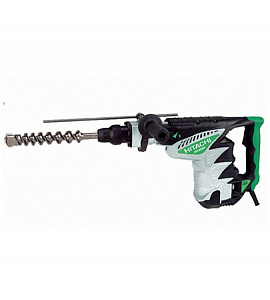 3. HITACHI DH45MR. Тяжелый перфоратор (8 кг) для долбежных работ. При мощности 1200 Вт имеет лучший показатель силы удара – 15,5 Дж. Работает в монорежиме ударного сверления, максимальный диаметр – 45 мм. Комплектуется патроном для буров крупного размера SDS-max, ограничительной планкой и вспомогательной рукояткой.